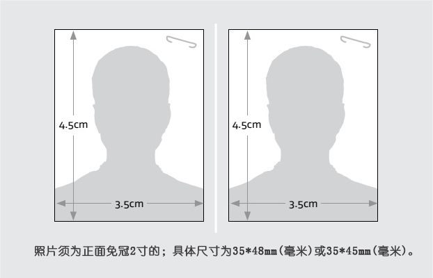2、照片尺寸:35 毫米 x 48毫米,照片要求清晰,无折痕或污渍;