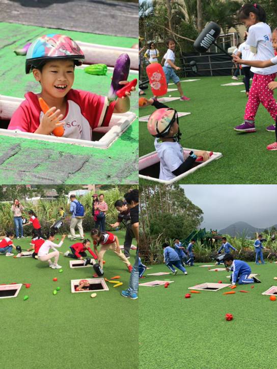 10:00-12:00 农耕劳作教育——收割稻谷(每个小朋友赠送稻谷瓶一个),真人版打地鼠,水上溜索