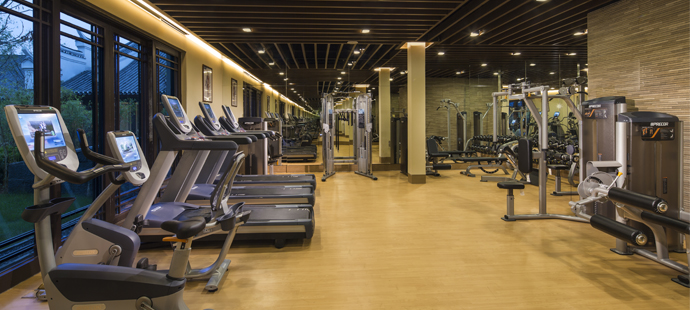 阳朔悦榕庄内配备顶级设施的健身房和充满童趣的儿童角,