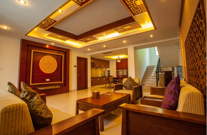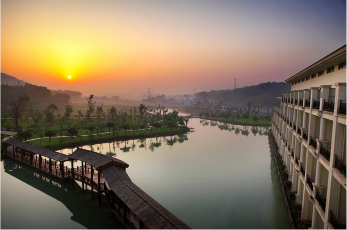 度假区外表大气绚丽,三面环山、山水辉映,