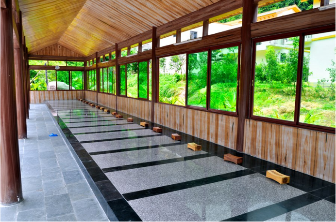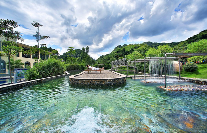 云瑶谷温泉区主要分为SPA室内养神区、禅境养心岛、五道养生谷、森林养性坡,
