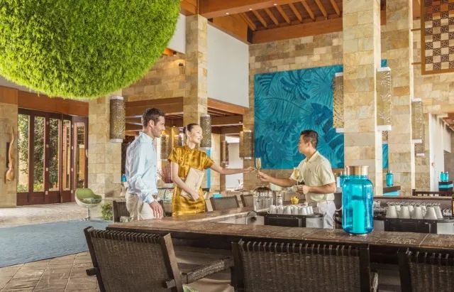 度假村前台登记入住时间是每天下午3点以后,你可以根据需求预订您由机场接送服务。