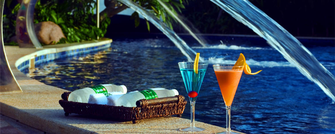 按摩喷头和中央喷泉池的不规则形泻湖泳池,进行一番畅游,让您的一天从愉悦开始。