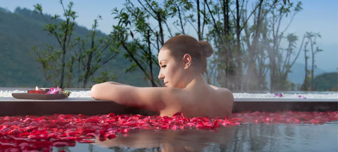 尽情放松,沉浸于颇具疗效的温泉水中。