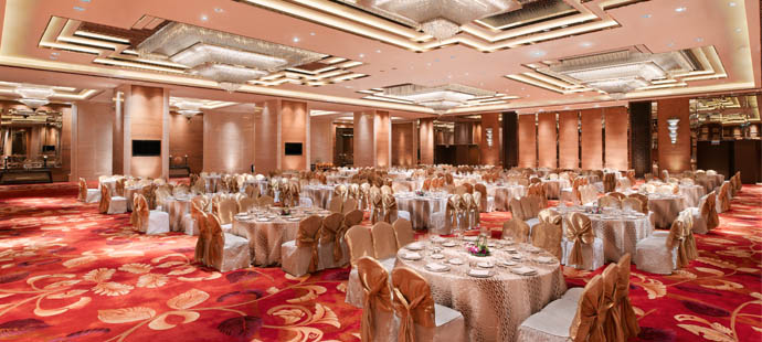 可容纳 500人的大型会场,为您营造富丽堂皇的华美环境。 典雅的照明、精美的穹顶造型和巧妙的餐桌布局,使宴会厅更显独特魅力。