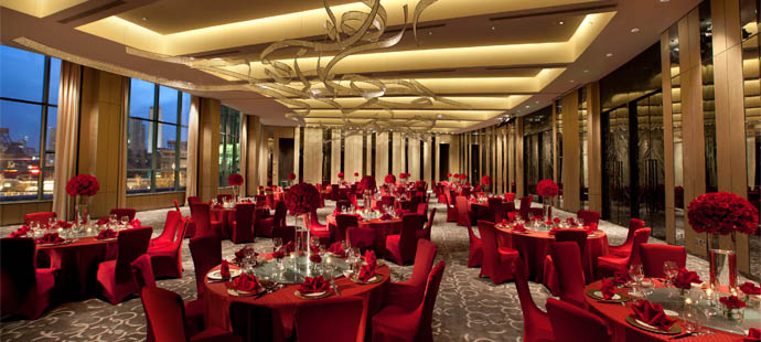 大宴会厅具有独特的扇形构造,可容纳380 位宾客,是举办大型宴会的完美场所。 小宴会厅可容纳200 位宾客,适于需要举办较为私密活动的宾客使用。