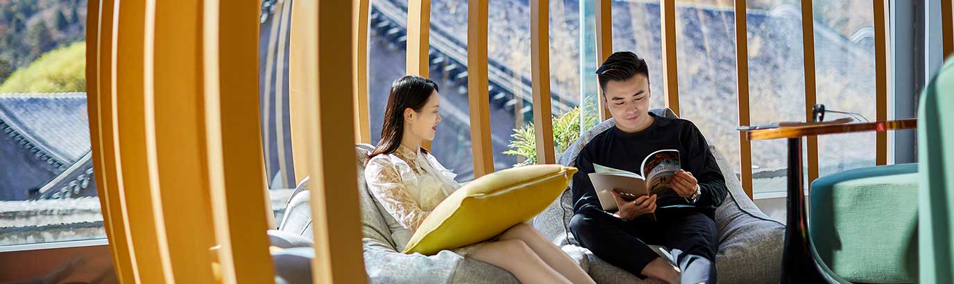 在我们格调别致的大堂吧尽情放松、惬意社交。这里的全景落地窗将磅礴山景尽收其中,是与亲友家人及同伴共同放松、分享长城体验的完美场所。这里的高速网络也让您能够在社交媒体与好友实时互动。