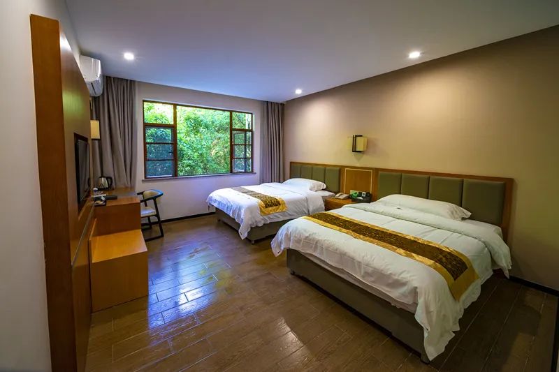 共有豪华双床房28间,分为四合院4间、中式围屋6间、岭南山居18间,立于山林之下;