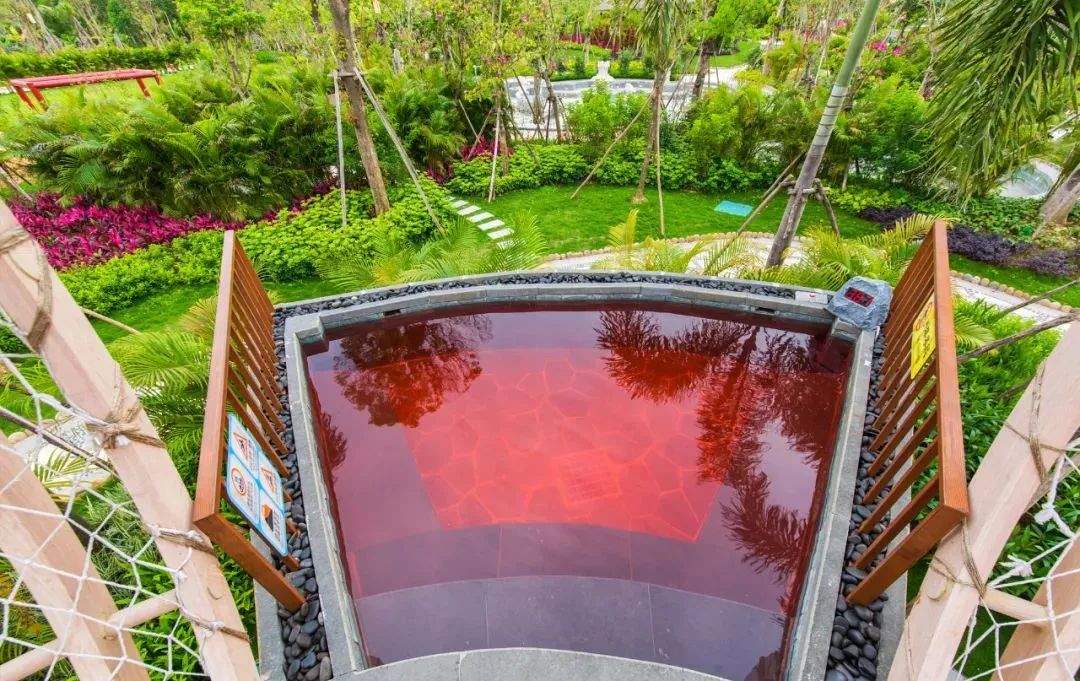 户外温泉区域还拥有有趣好玩的玩乐设施-旋转滑梯,享受离心加速的美妙体验,网红水幕秋千荡飞烦恼,绳网步道进行智力与勇气相结合的冒险,泡泡池进行夏日欢乐大作战,喂鱼平台旁体会岁月静好。