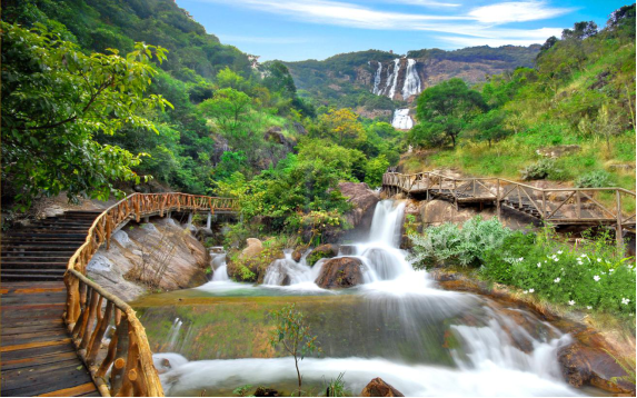 白水寨景区内有高大瀑布,娘娘潭、双剑泉磨刀埔瀑布群