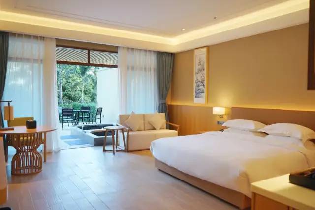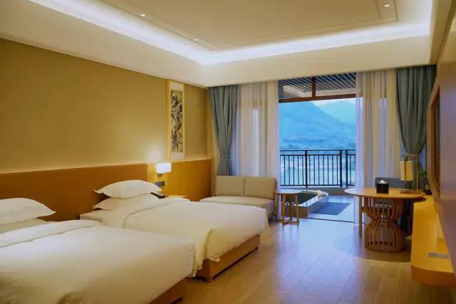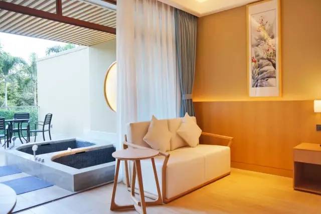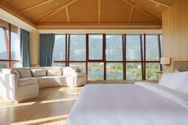 斜倚在阳台的沙发上,欣赏大自然从早晨到黄昏变幻无穷的迷人景致,或慢条斯理沉浸在柔软的温泉甘露里,轻轻抿上一口热茶,慢慢享受此刻宁静、安逸的美好时光。