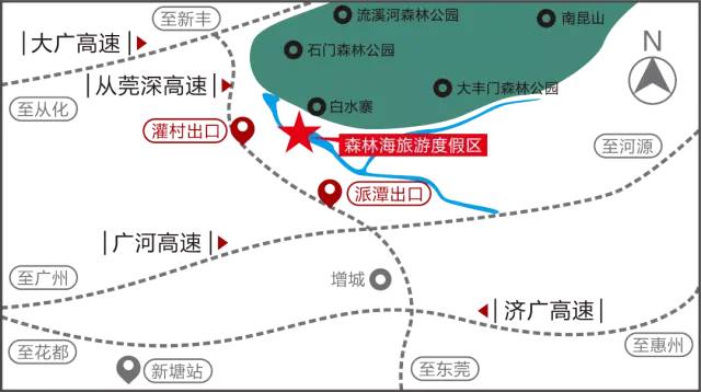 酒店位于南昆山南麓山下,紧邻国家AAAA级广州增城白水寨风景名胜区。