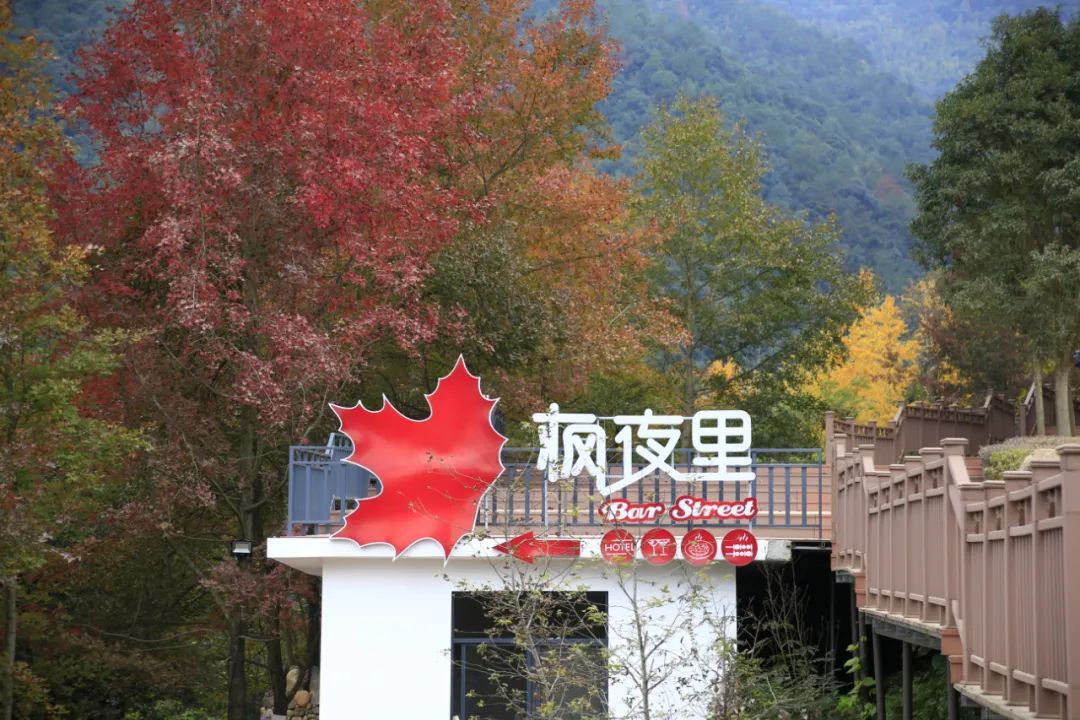 枫叶里民宿街枫夜里民宿街:一房一品,一街一景,荷塘菜园,枫树林融为一体。