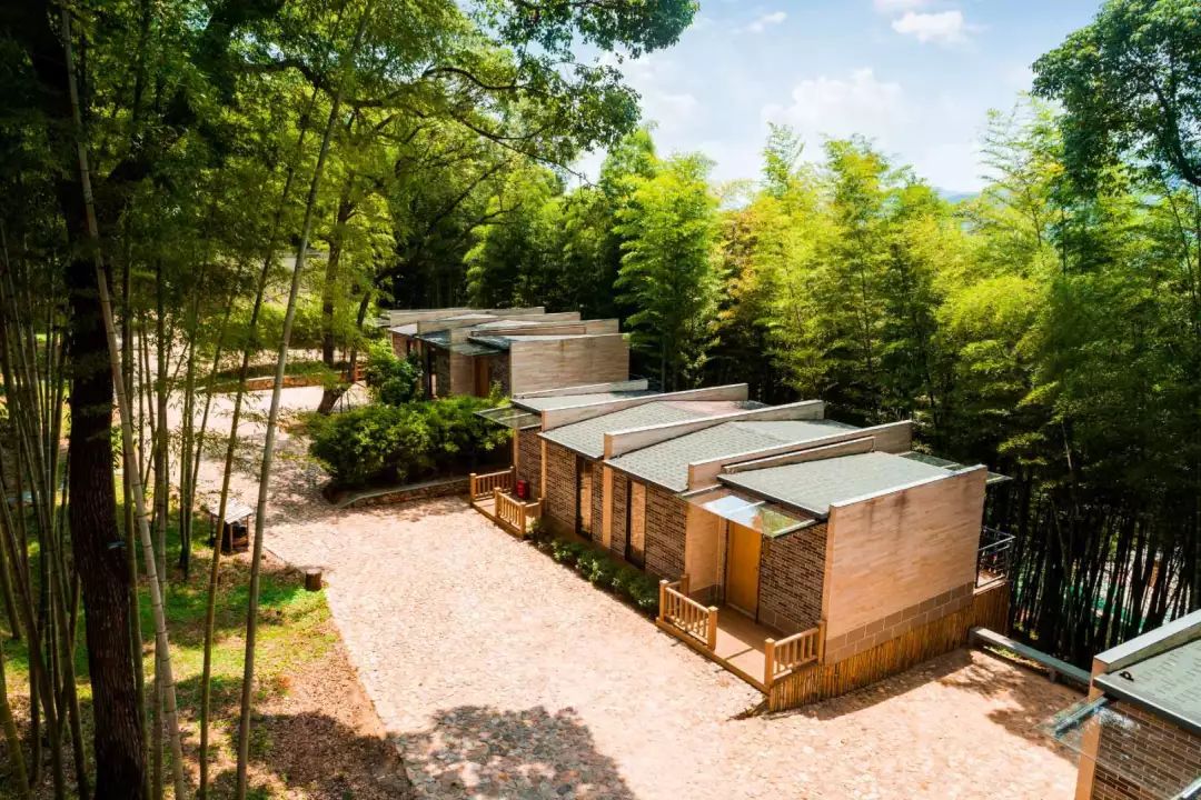 春秋舍竹林 竹林慢生活特色的度假体验区。由14栋独立的竹林雅舍构成,青砖墙,木梁房,木塑回廊,生态优雅。